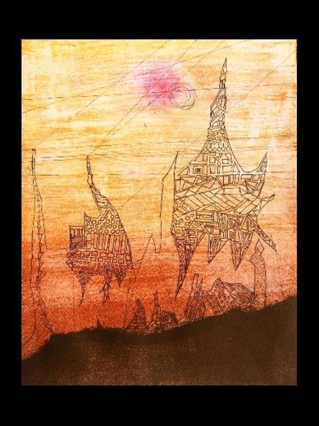 CITTA' SOSPESA - acquaforte, fondino, poupè - 21x30 - 2003