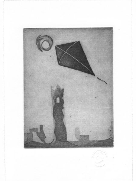 VOLO SULLA CITTA' - acquaforte, fondino - 17,5x25 - 2009